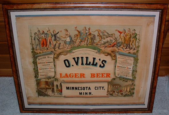 Pre-Prohibition Beer Lithograph on Canvas Original Frame